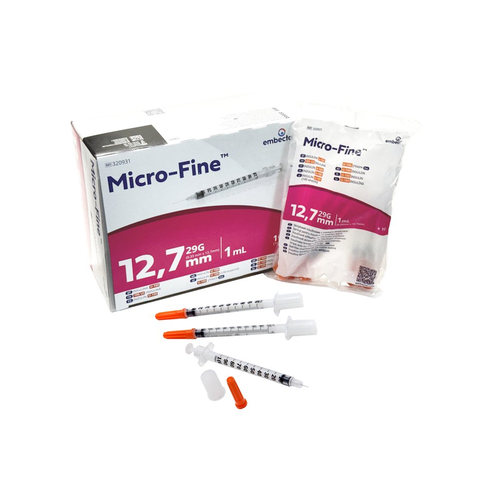 - BD Micro-Fine™ Plus, objem 1 ml se stupnicí U-100; tj. 1,0 ml / 100 I.U. (IE) a s integrovanou jehlou 29G (0.33×12,7)