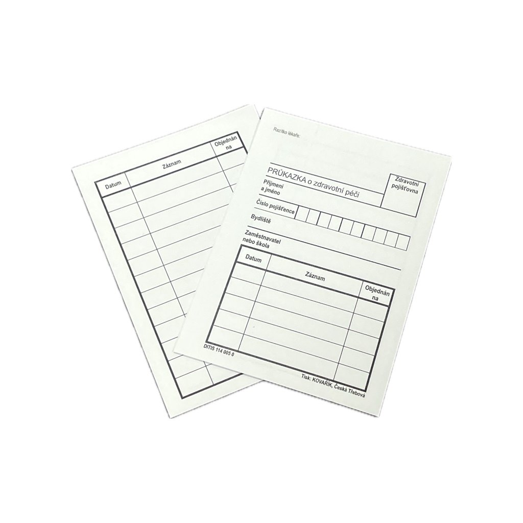 Dodáváme tiskopisy pro státní i privátní zařízení, tiskopisy pro lékárny, zdravotní pojišťovny, státní správu, ústavy sociální péče i jiná odvětví