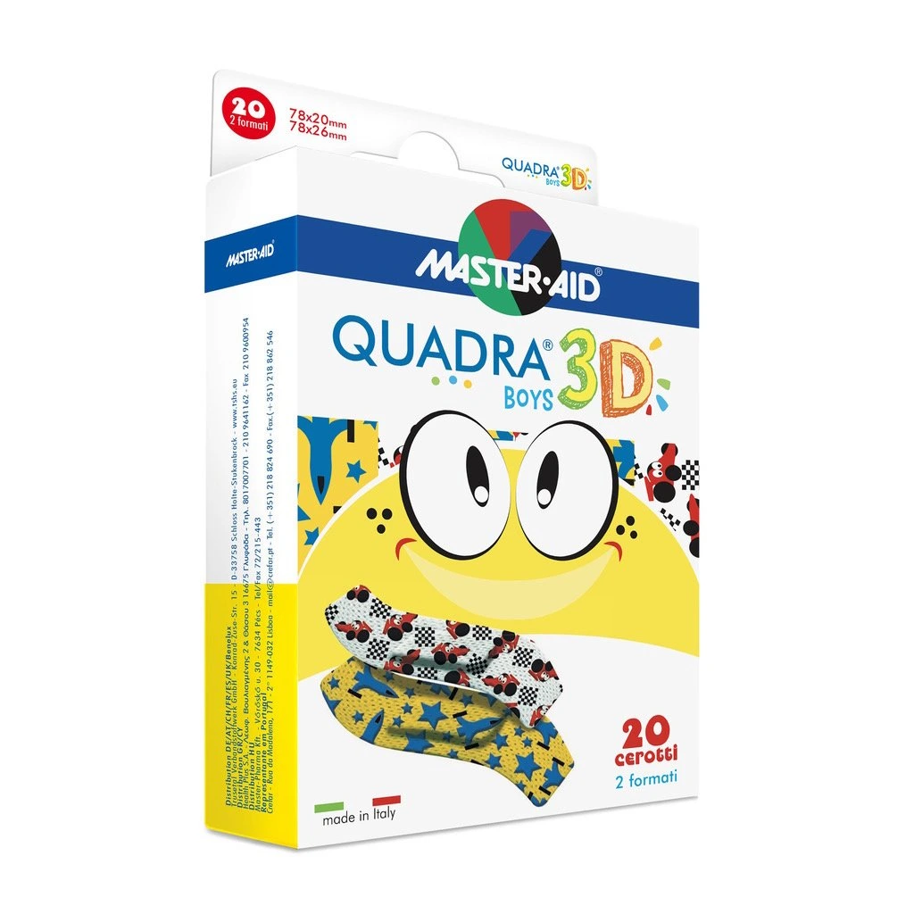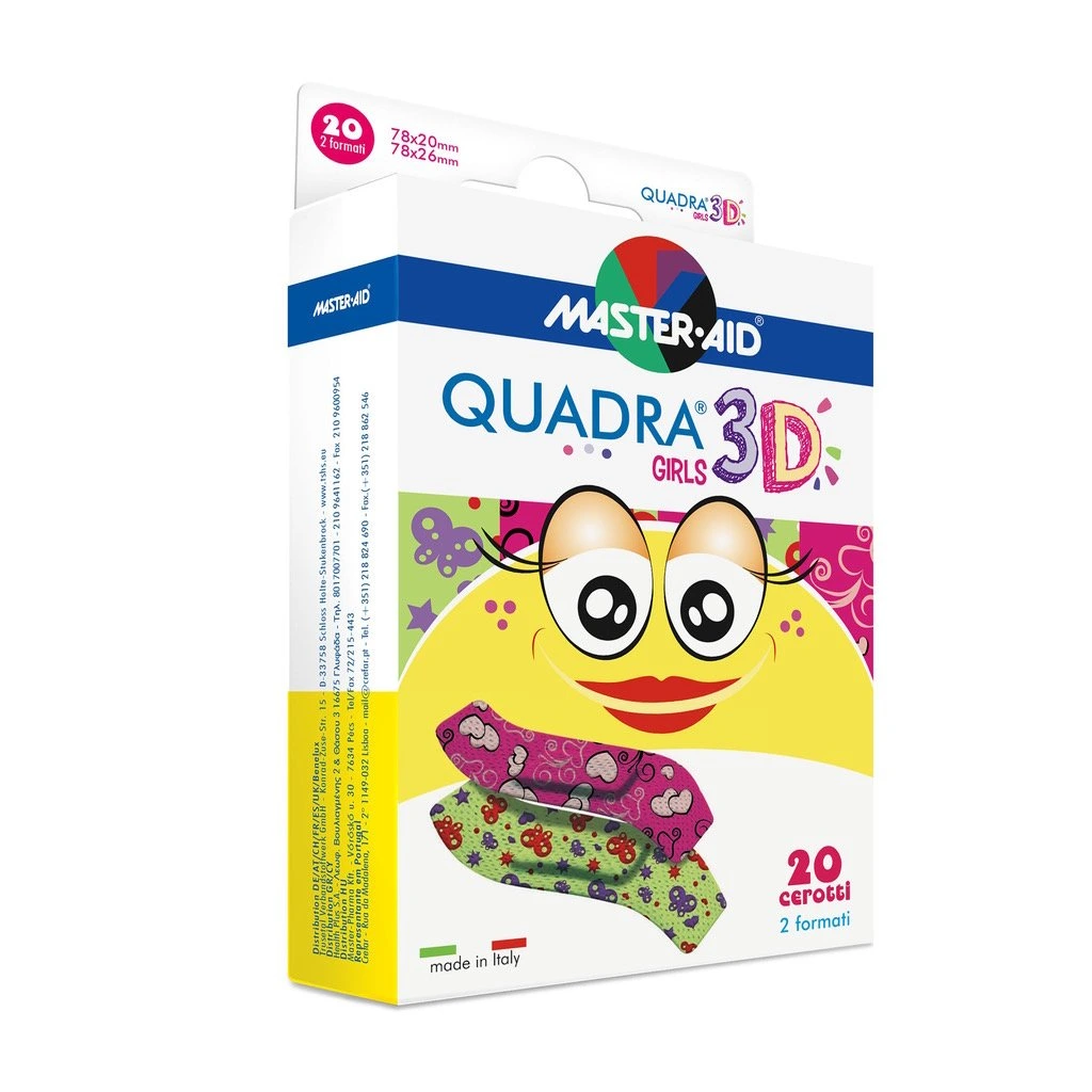 Dětská náplast Master Aid Quadra 3D od výrobce Pietrasanta Pharma je první náplast svého druhu, která nabízí jedinečný vizuální i hmatový 3D efekt. Vyrobena z prodyšné netkané textilie s atraktivními veselými dětskými vzory, které ošetření drobných poranění promění v zábavný zážitek. Ultra absorpční nepřilnavý polštářek spolehlivě chrání ránu, zatímco sensitive hypoalergenní lepidlo šetří i tu nejcitlivější dětskou pokožku. Dostupná ve variantě pro dívky s barevnými vzory motýlků a srdíček a ve variantě pro chlapce s motivy autíček a hvězd. Každé balení obsahuje 20 ks ve 2 velikostech (78×20 mm a 78×26 mm).