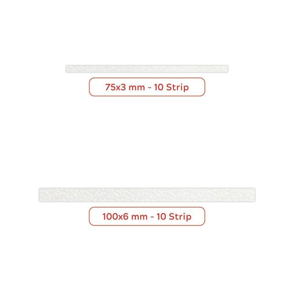 - 75×3 mm – užší formát vhodný pro menší řezné rány a poranění na méně exponovaných místech těla.