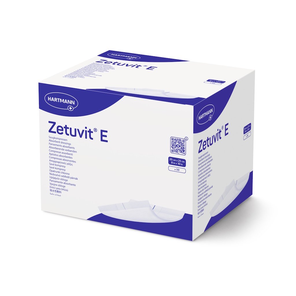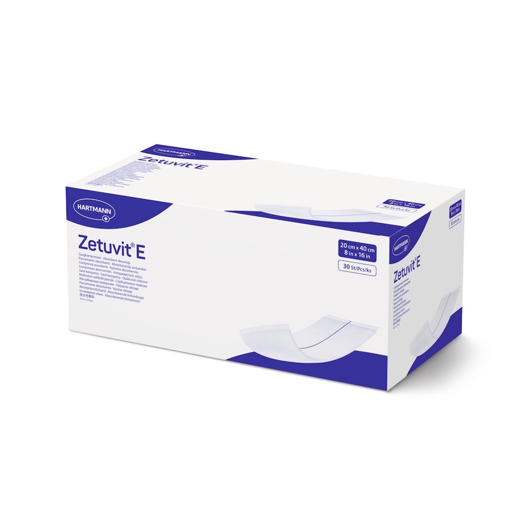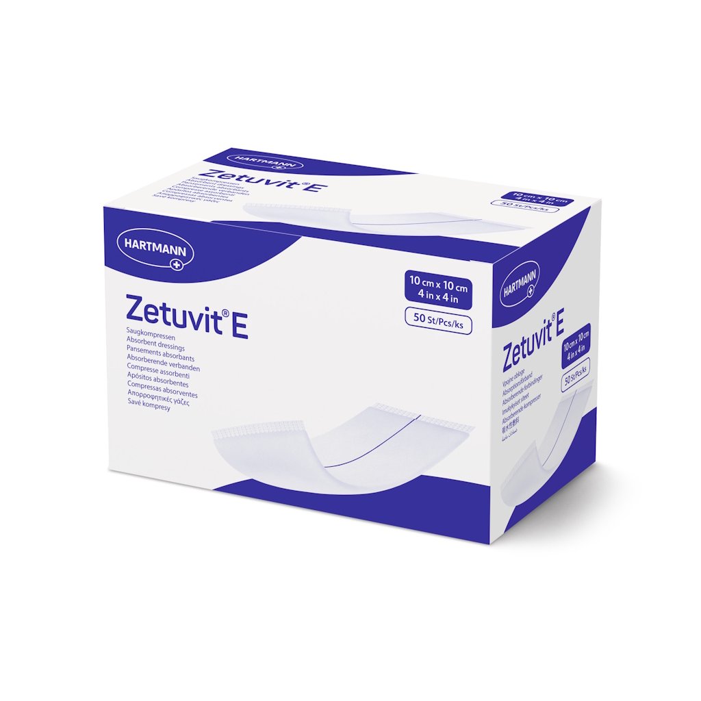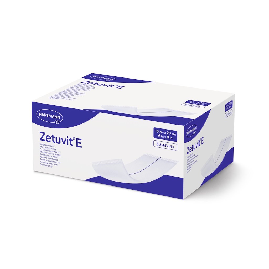 Savý kompres Zetuvit E nesterilní od výrobce Hartmann-Rico je zdravotnický prostředek s vysoce absorpční čtyřvrstvou konstrukcí, určený pro ošetřování secernujících a silně secernujících ran. Hydrofobní vnější vrstva zamezuje prosáknutí sekretu, umožňuje ráně dýchat a chrání před sekundární infekcí. Kompres lze použít jako primární krytí nebo jako sekundární krytí v kombinaci s fixačními obinadly.
